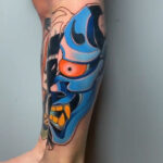 Tetování maska ďábla na lýtko
