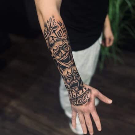 Tetování maska hannya na hřbetu ruky