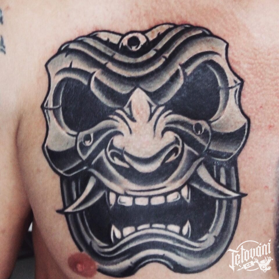 Tetování maska hannya na hrudi