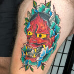 Tetování maska Hannya na stehno