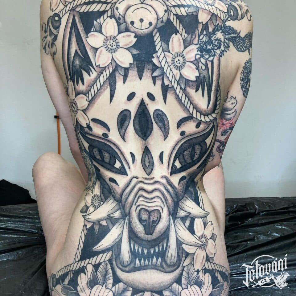 Tetování maska Hannya na záda