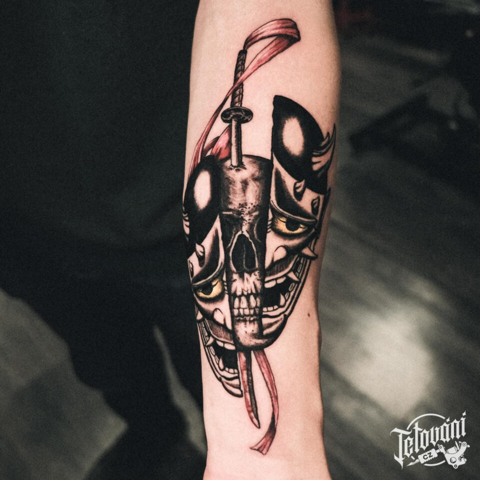 Tetování maska, Hanya a lebka na předloktí