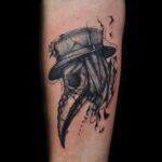 Tetování maska, morový doktor na předloktí