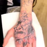 Tetování maska na hřbetu ruky