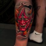 Tetování maska, nadpřirozená bytost Krampus na lýtko