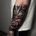 Tetování maska, růže na předloktí