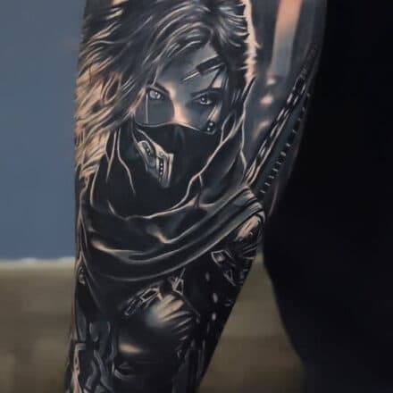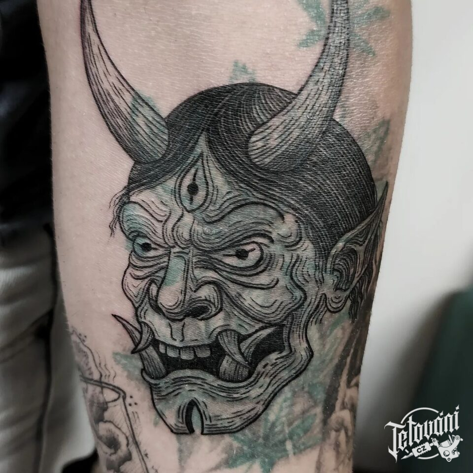 Tetování maska samuraje na předloktí