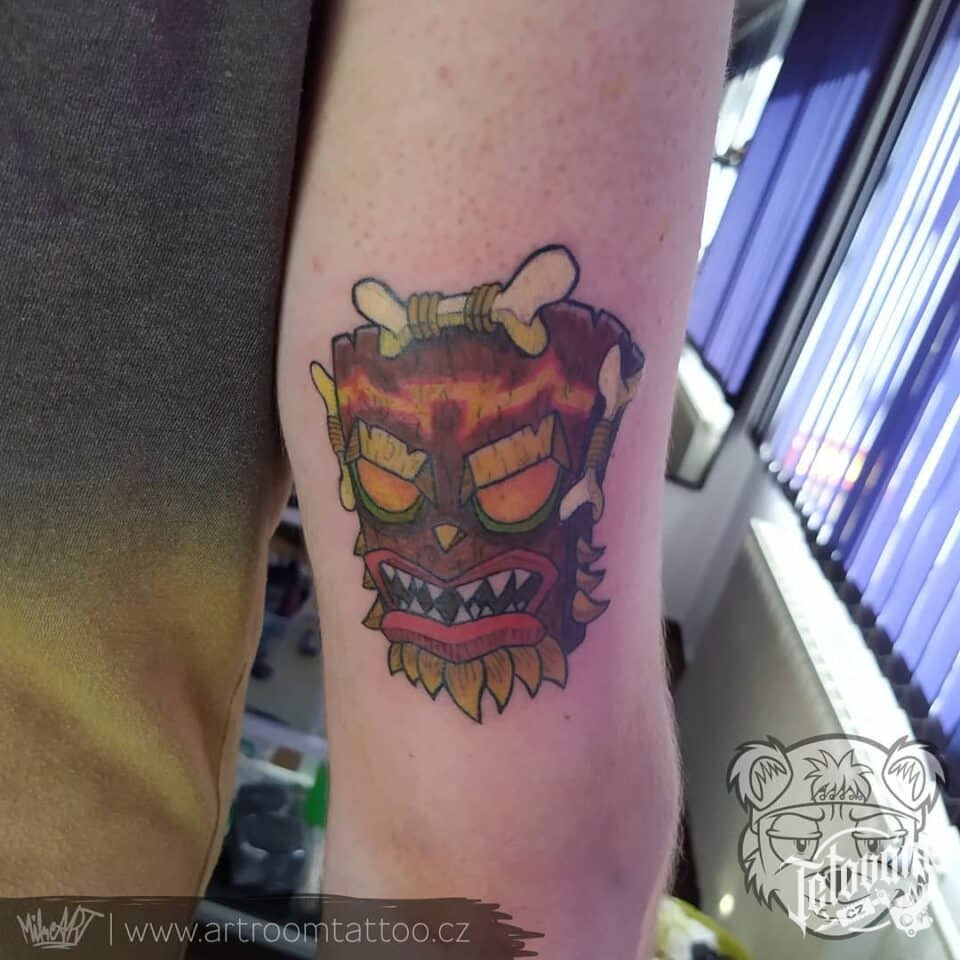 Tetování maska z Crashe na paži