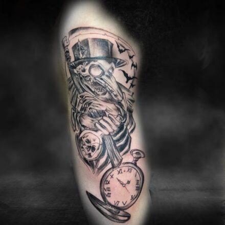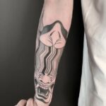 Tetování maska, znaky a symboly na předloktí