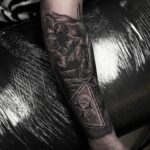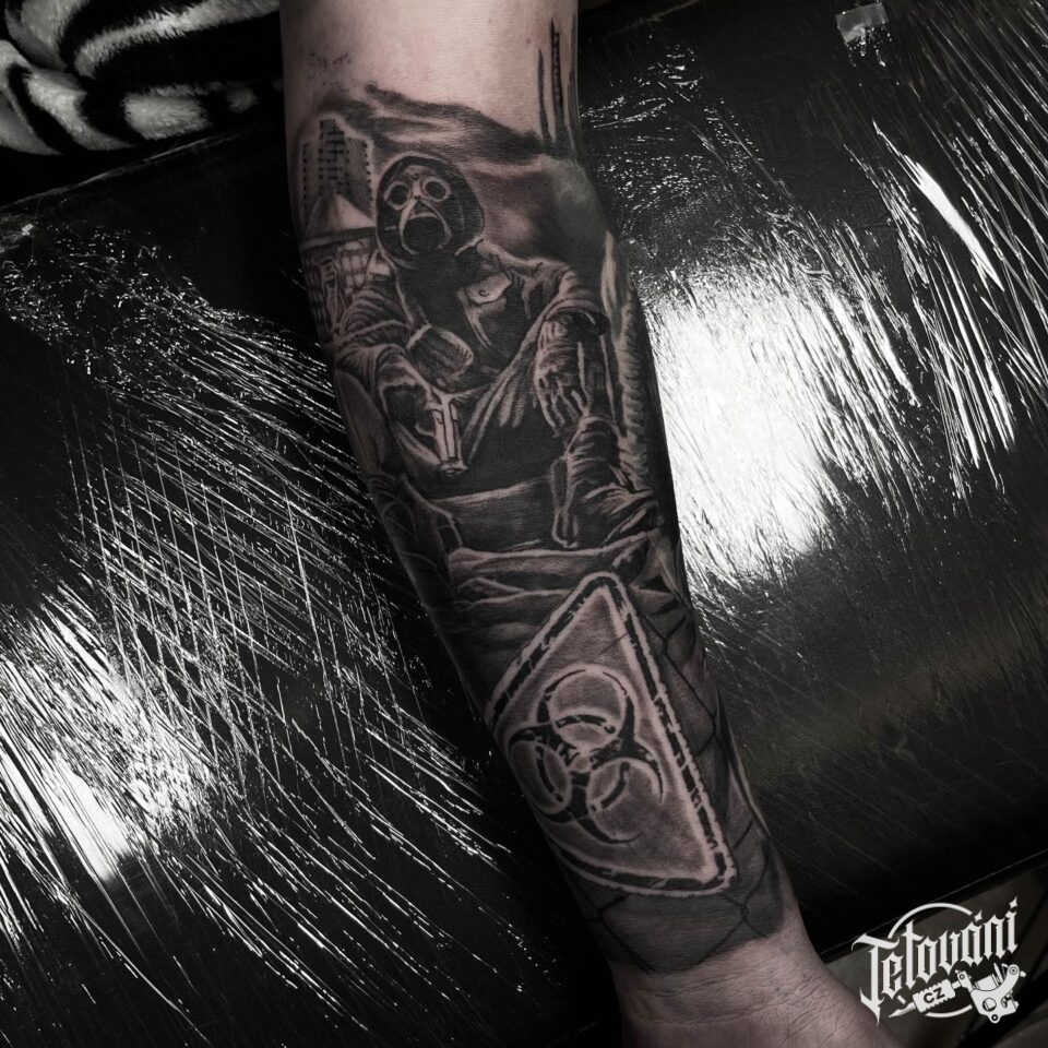 Tetování masky, znaky a symboly na předloktí