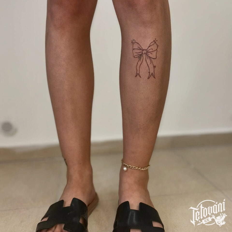 Tetování mašle na holeni