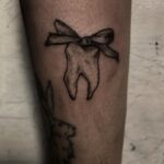 Tetování mašle se zubem na lýtko