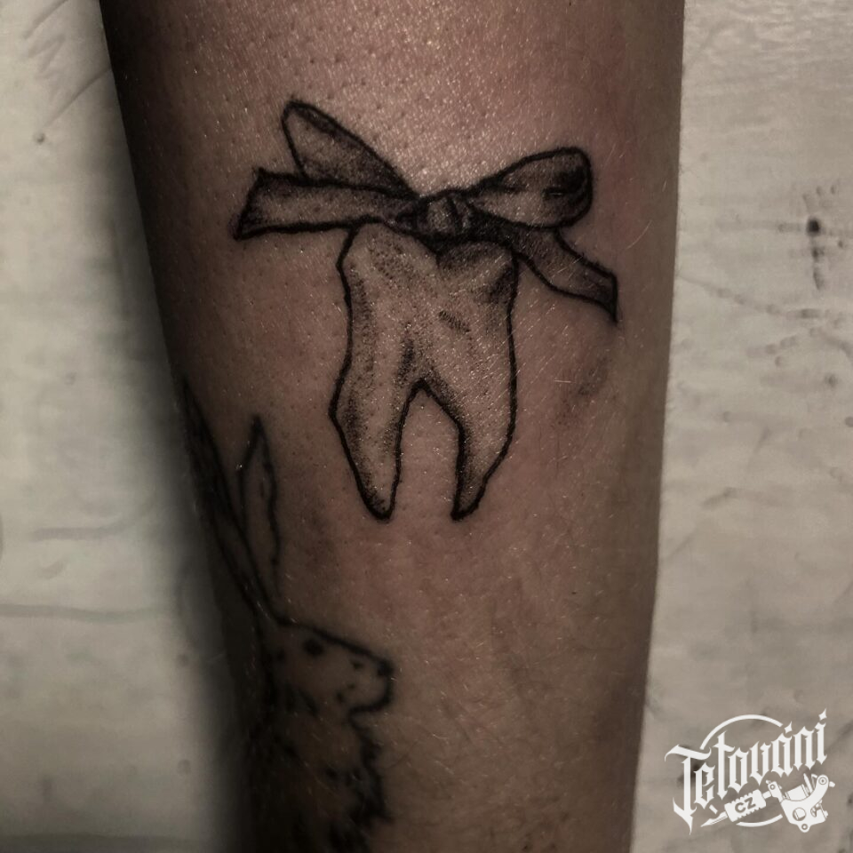Tetování mašle se zubem ...