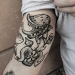 Tetování masožravá květina na bicepsu