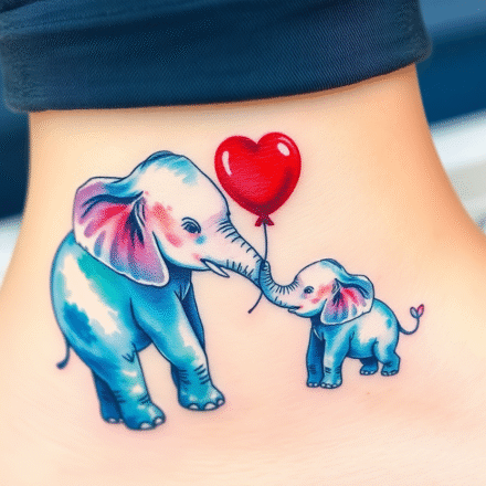 Tetování matka a dítě, slon a mládě, srdce na rameno