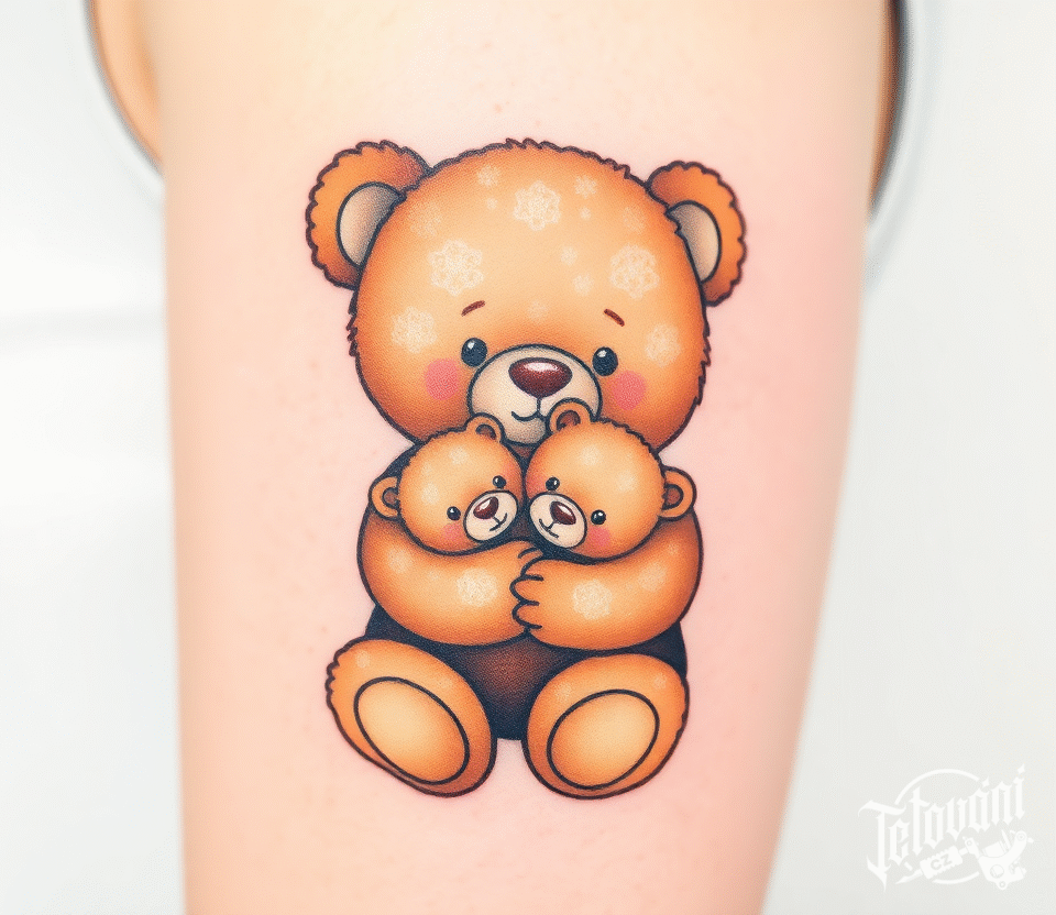 Tetování matka dítě, zvíře medvěd a mláďata na rameno