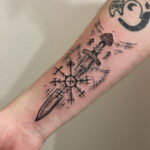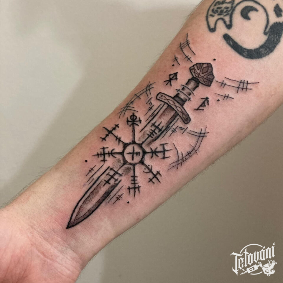 Tetování meč a runa, runa ochranné symboly na předloktí