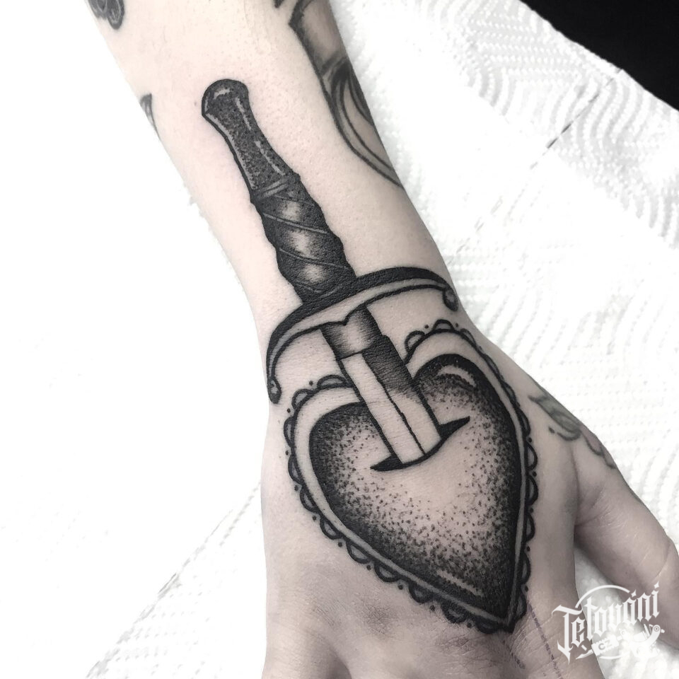 Tetování meč a srdce na ruku