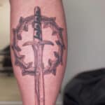 Tetování meč a věnec na lýtku