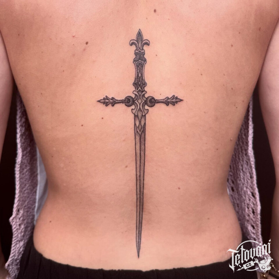 Tetování meč na páteři