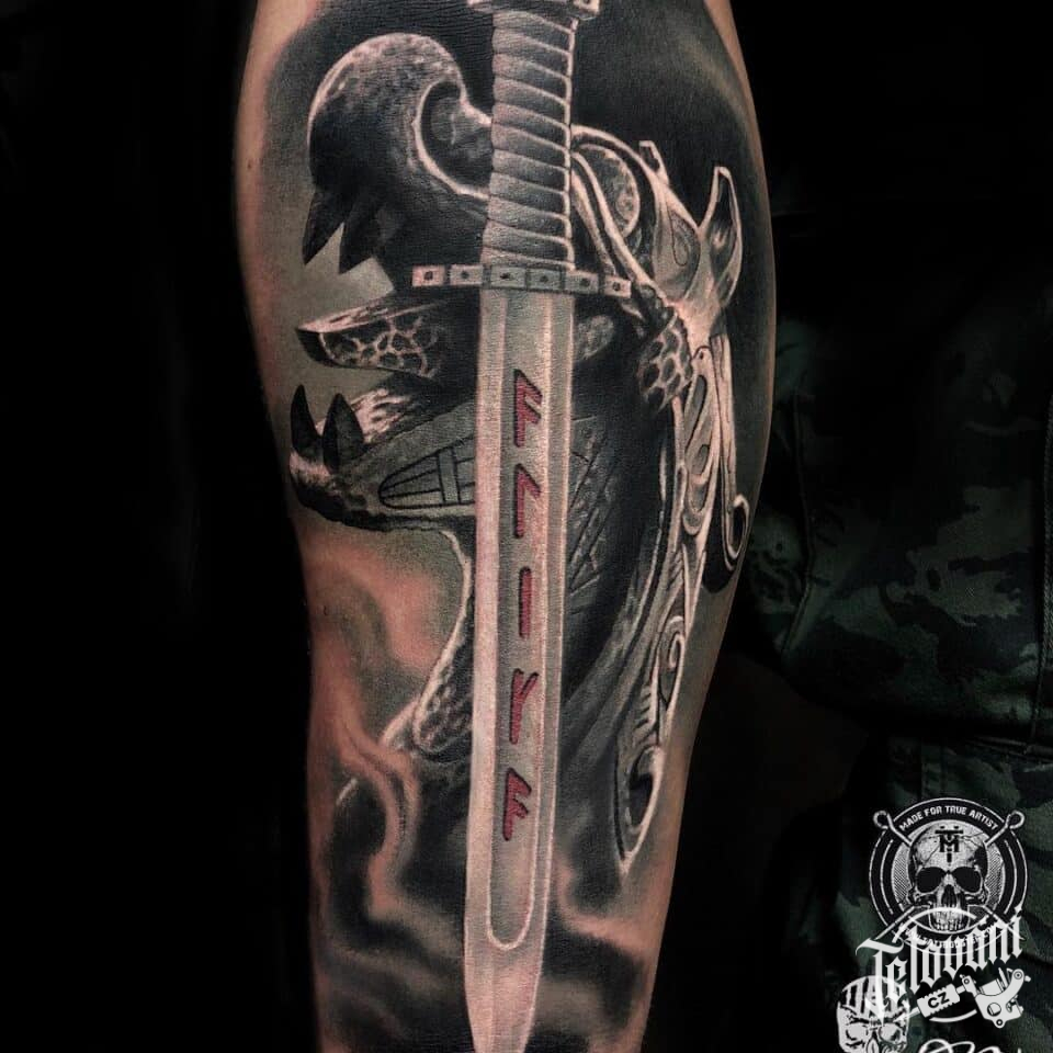 Tetování meč na předloktí