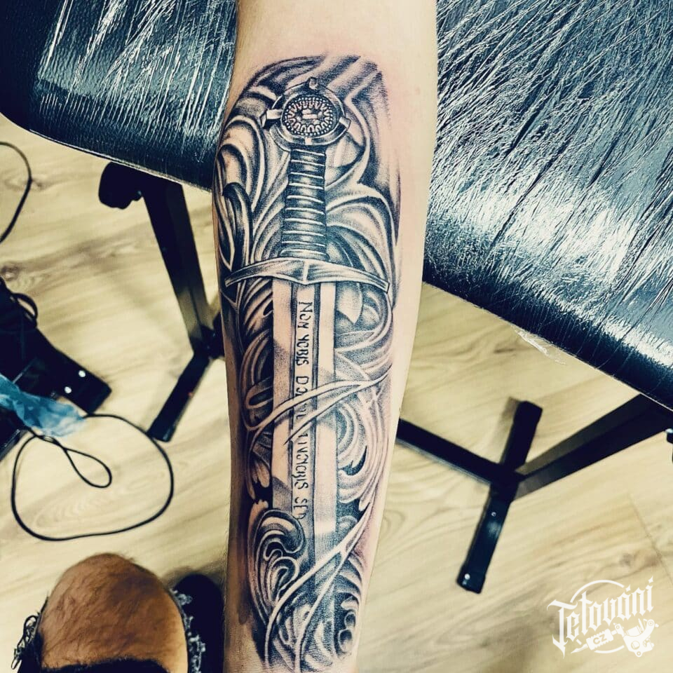 Tetování meč na předloktí