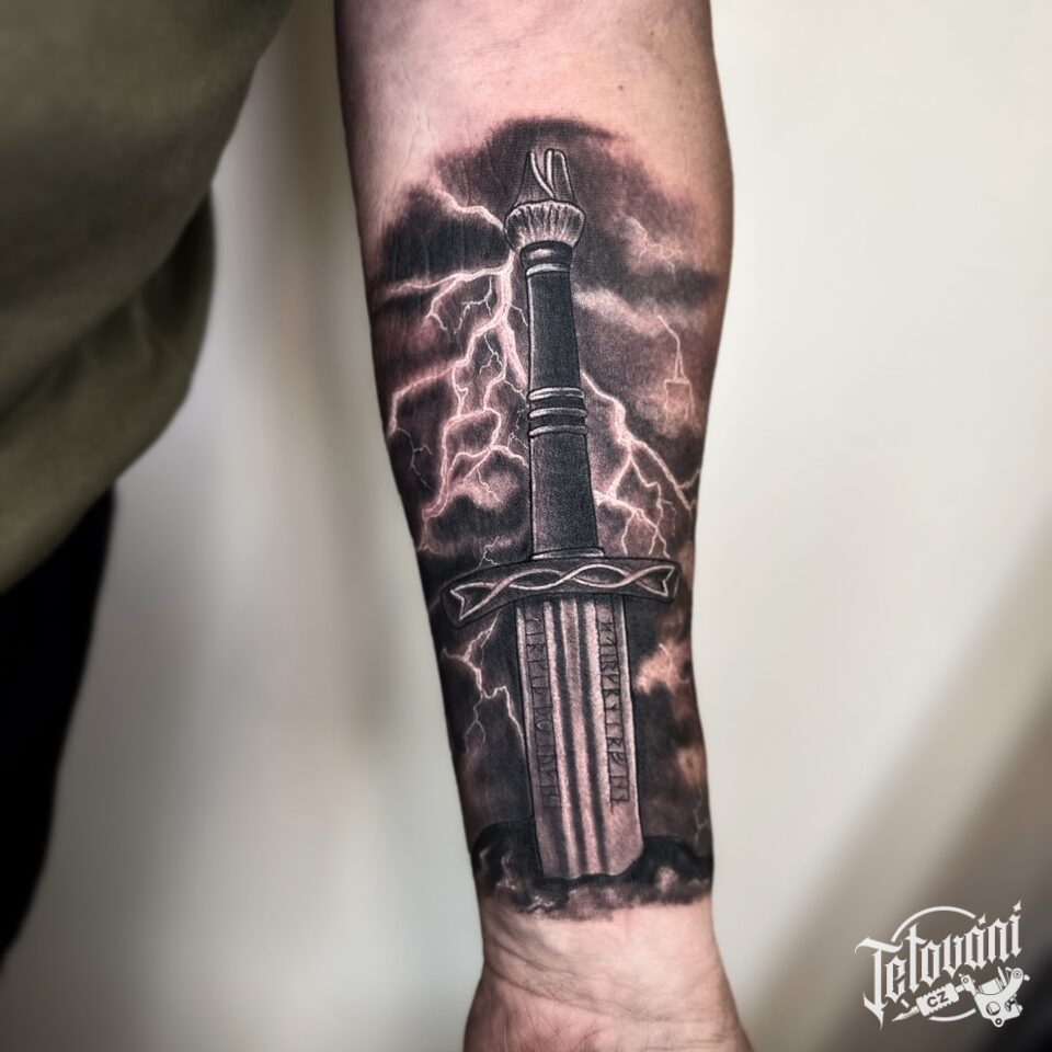 Tetování meč na předloktí
