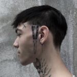 Tetování meč, nůž na obličeji