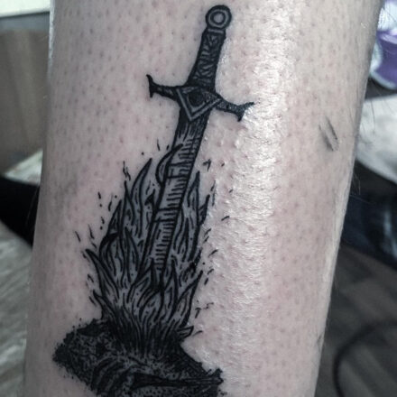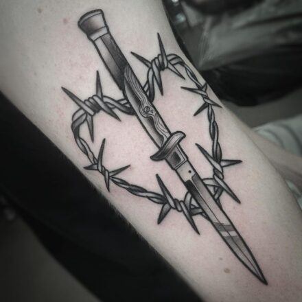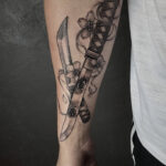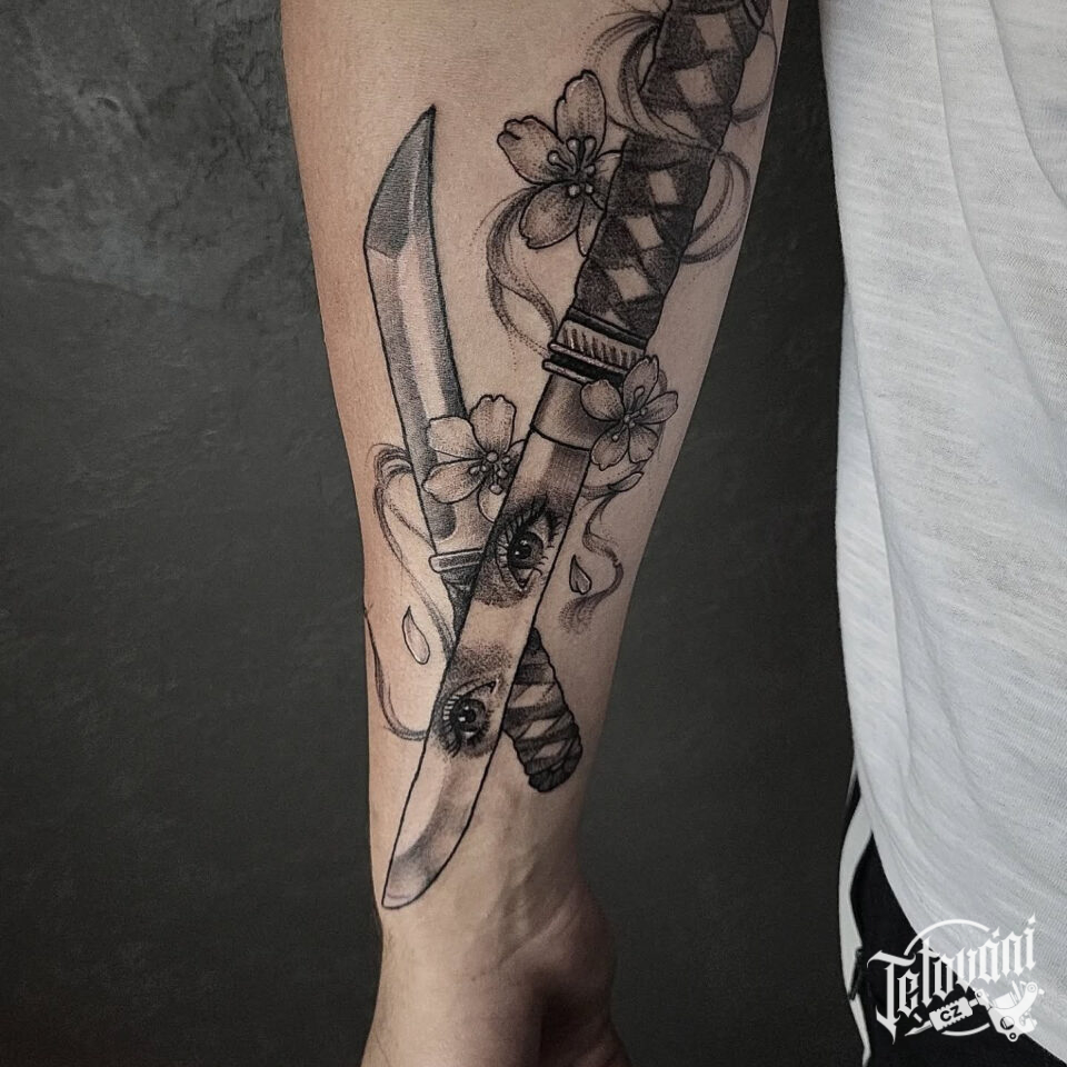 Tetování meč, oči na předloktí
