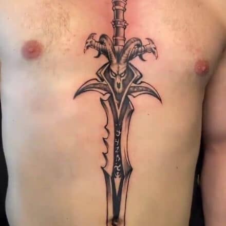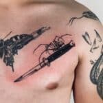 Tetování meč, pavouk na prsu