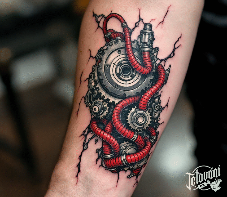 Tetování mechanismus robotické ruky na předloktí