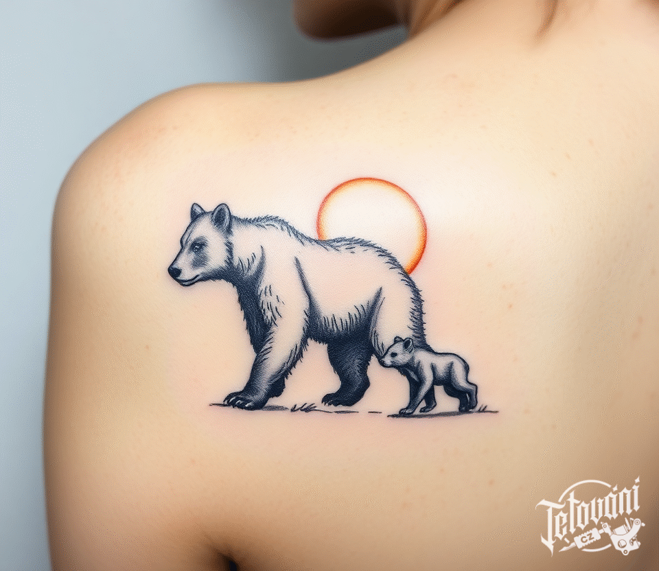 Tetování medvěd a mládě, symbol matka a dítě na lopatku