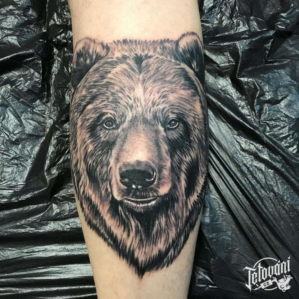 Tetování medvěd na lýtku