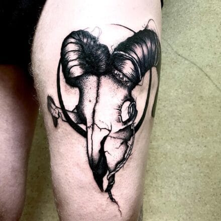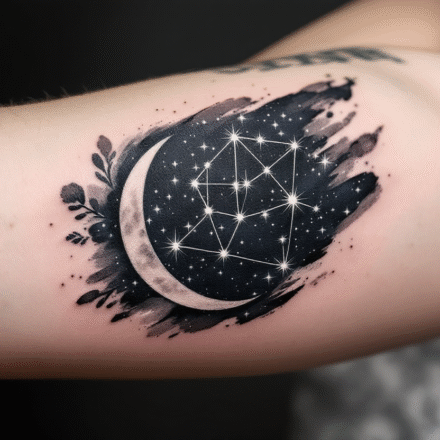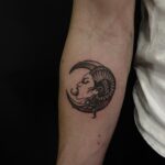 Tetování měsíc a znamení zvěrokruhu beran na předloktí
