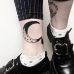 Tetování měsíc, hvězdy a slza na kotníku