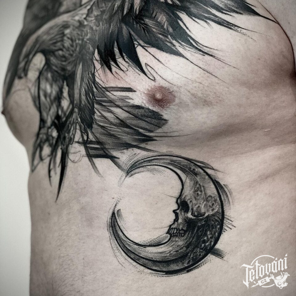 Tetování měsíc lebka na žebrech