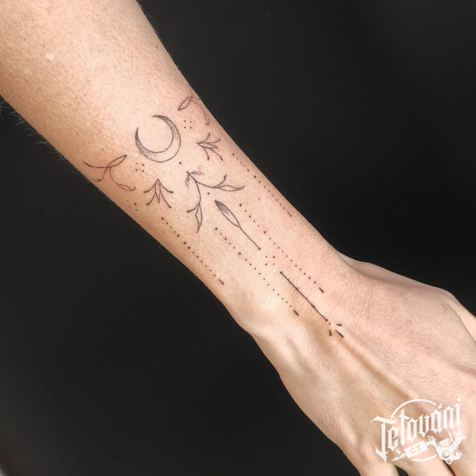 Tetování měsíc, ornamenty na předloktí