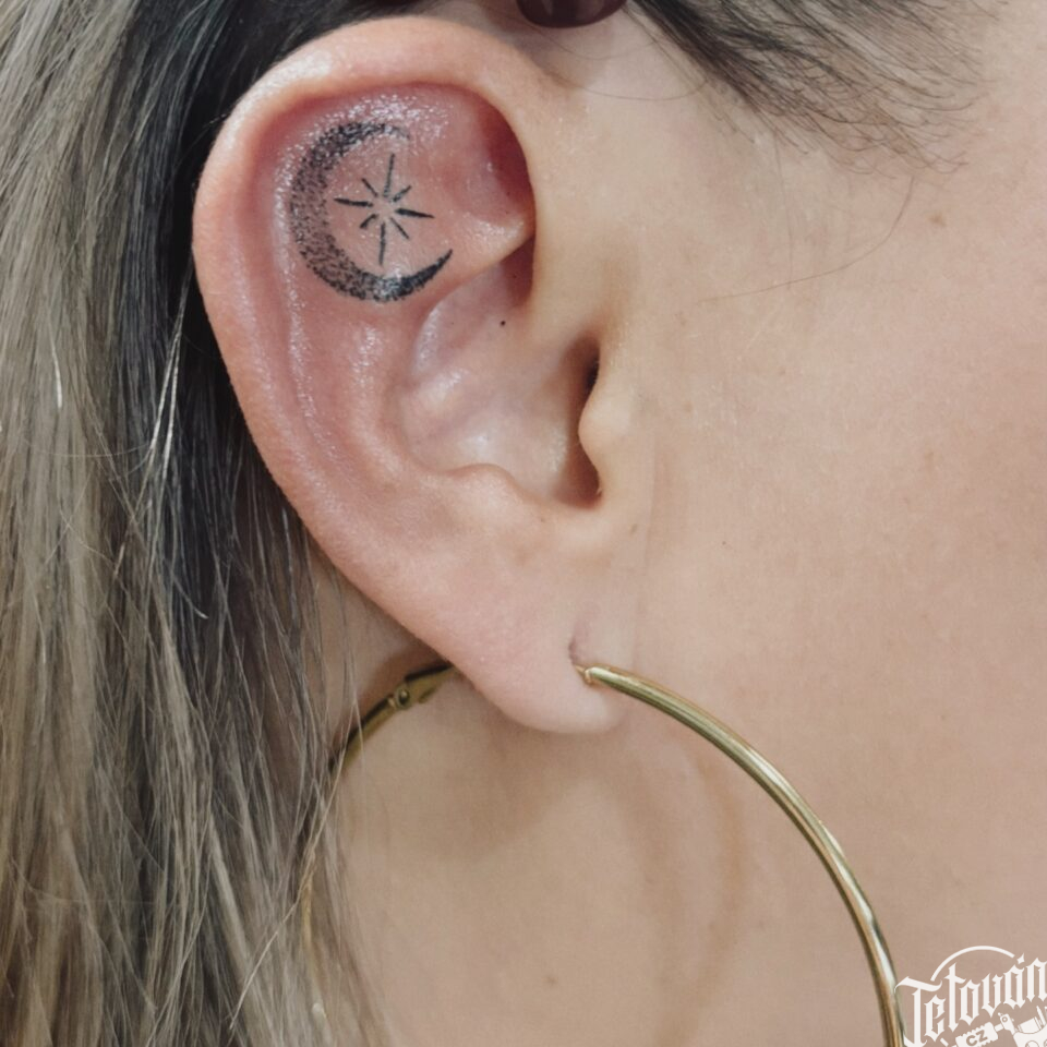 Tetování Měsíc s hvězdou na uchu
