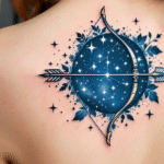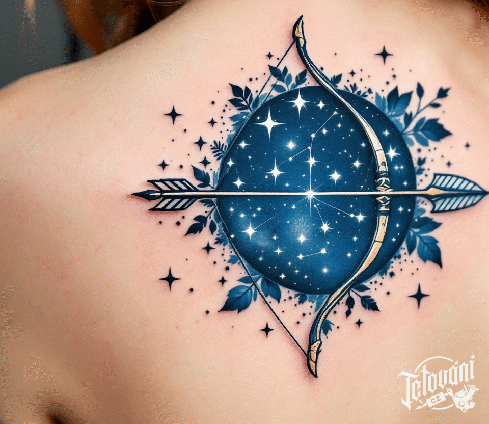 Tetování měsíc se souhvězdím střelce, šíp na záda