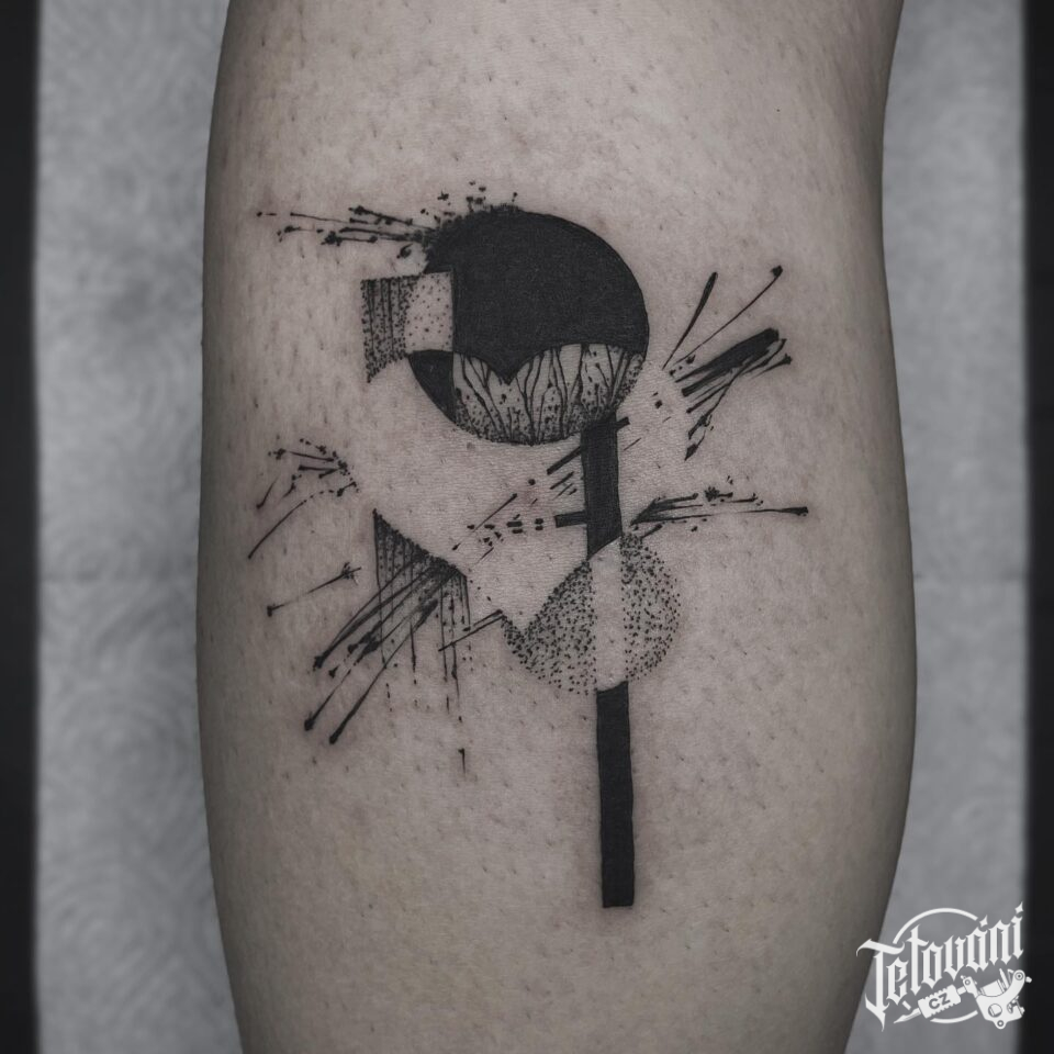 Tetování měsíc, symboly, čáry na lýtko
