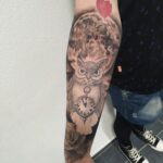 Tetování měsíc, vesmír, zvíře sova na předloktí