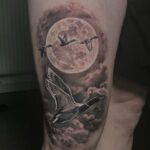 Tetování Měsíc, zvířata, ptáci, kachny na stehně