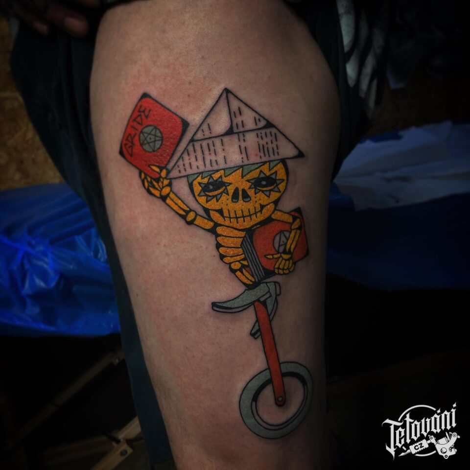 Tetování Metalníček z filmů a pohádek na boku stehna