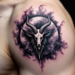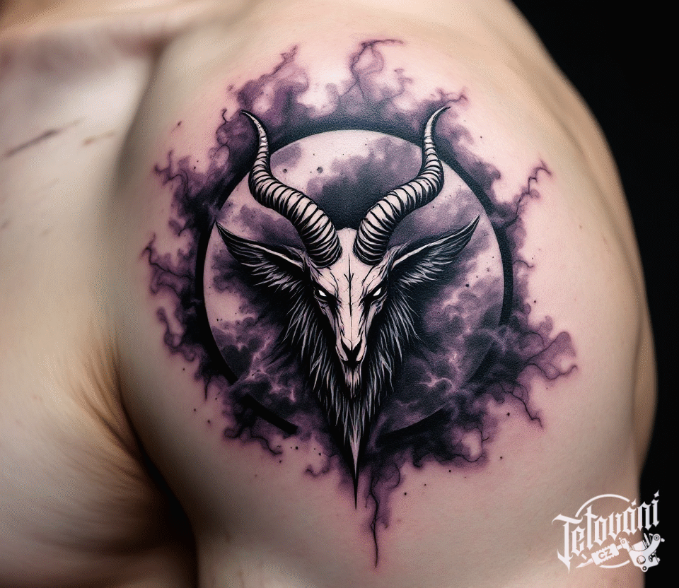 Tetování metalový motiv, kozoroh s měsícem na rameno