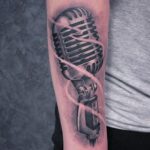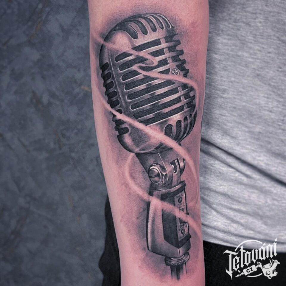 Tetování mikrofon, symbol hudby na předloktí