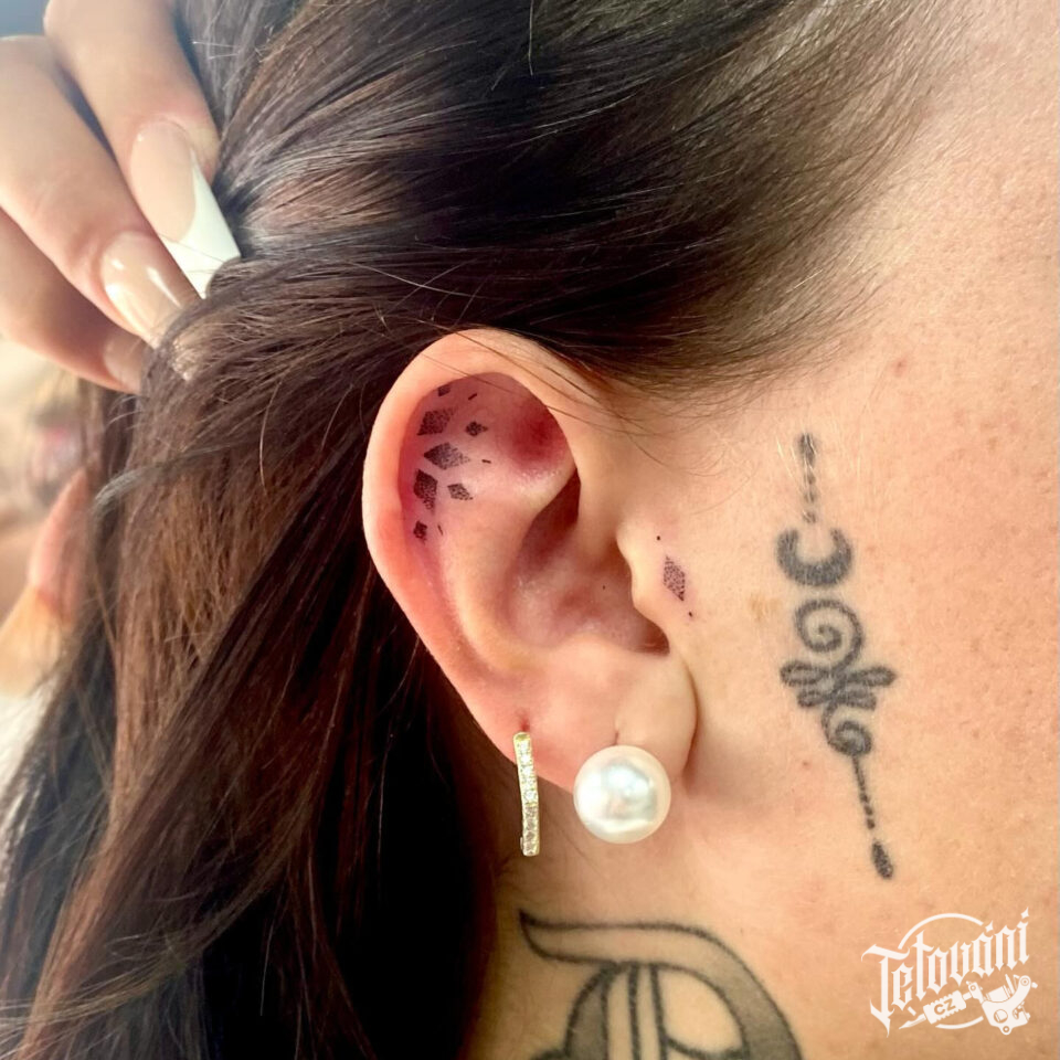 Tetování minimalistický ornament na uchu