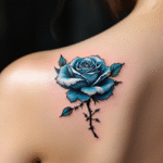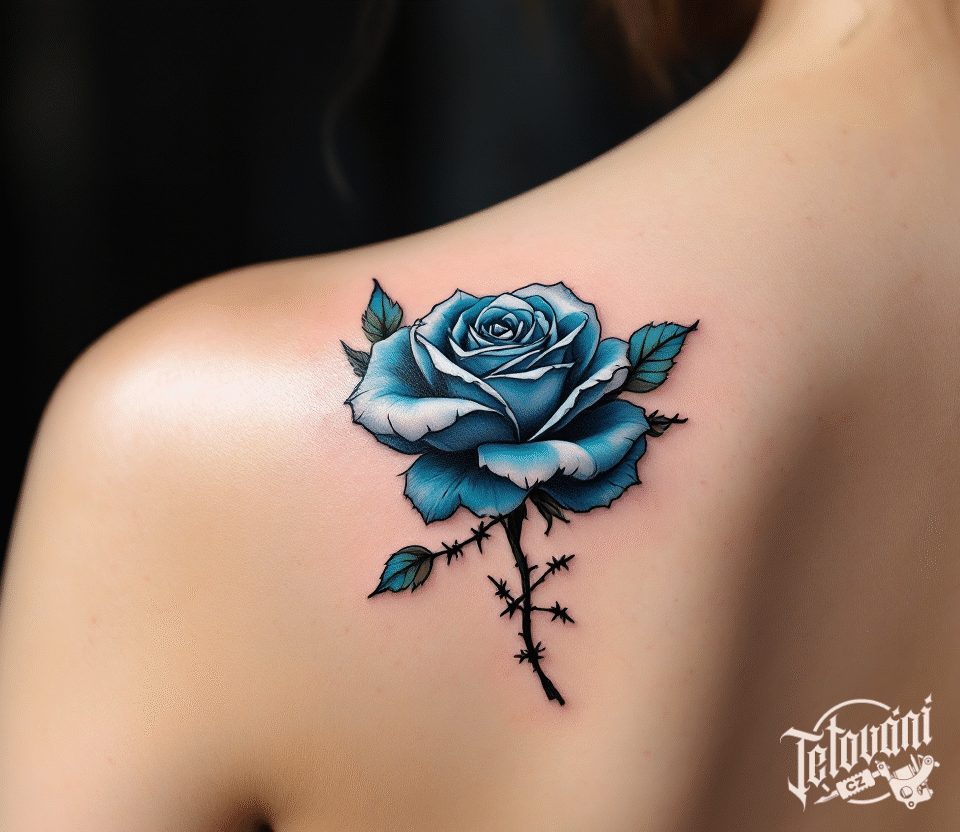Tetování modrá růže na lopatku