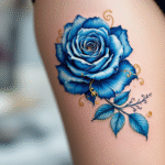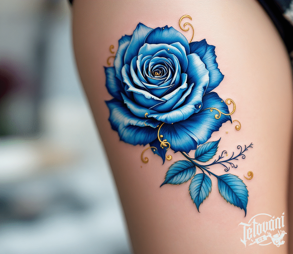 Tetování modrá růže na stehno