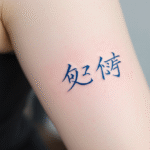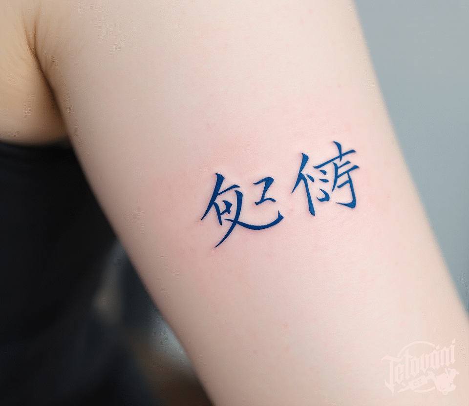 Tetování modré japonské znaky na ruce