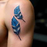Tetování modré peří na rameno